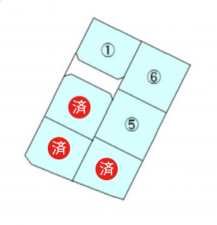 法令等制限:③④⑤⑥区画上空に送電線有り、地役権が設定されています。