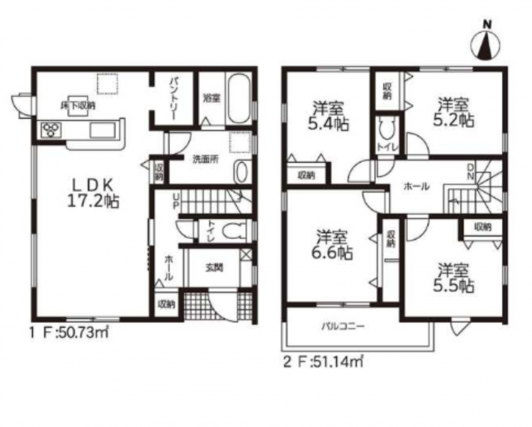 - システムキッチン、カウンターキッチン、シャンプードレッサー、洗浄便座、浴室乾燥機、追い焚き、複層ガラス、ウォークインクローゼット、駐車場2台分、床下収納、エコキュート、トイレ2箇所