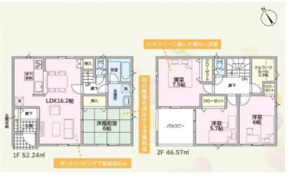 - システムキッチン、カウンターキッチン、シャンプードレッサー、洗浄便座、浴室乾燥機、追い焚き、複層ガラス、ウォークインクローゼット、モニタ付インターホン、駐車場3台分、床下収納、エコキュート、トイレ2箇所